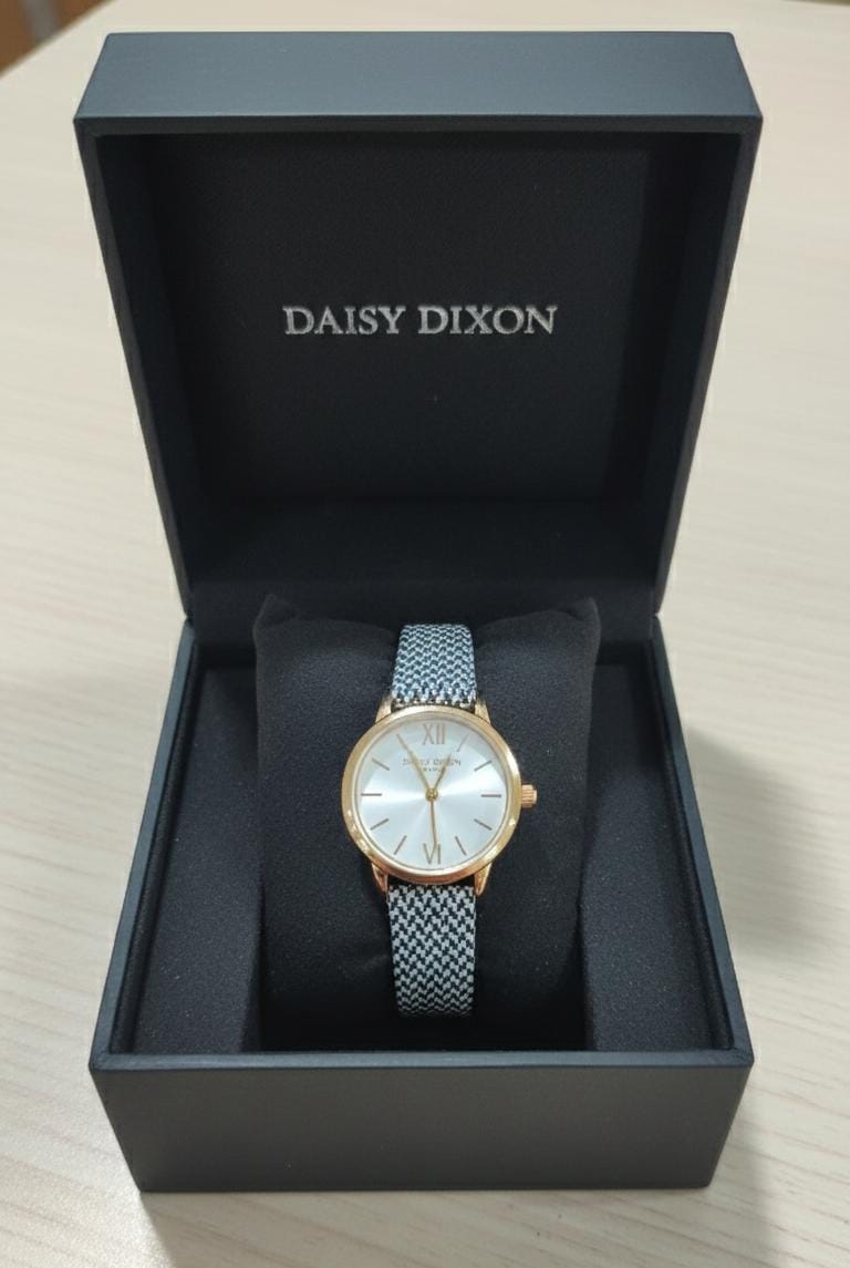 This watch blends a classic silhouette with a playful, trendy aesthetic that is characteristic of the Daisy Dixon brand.